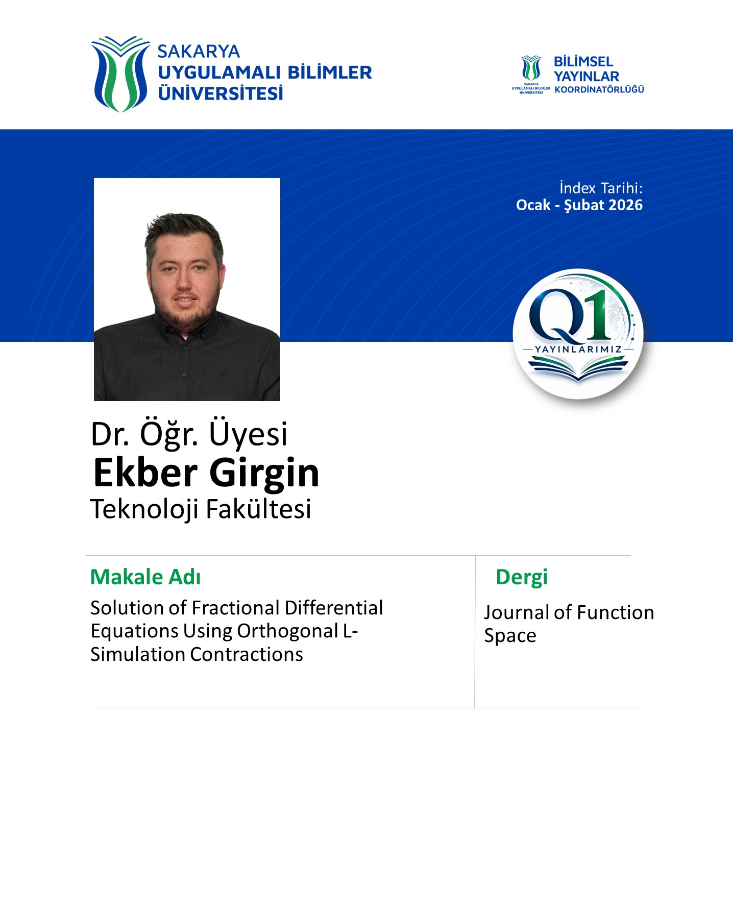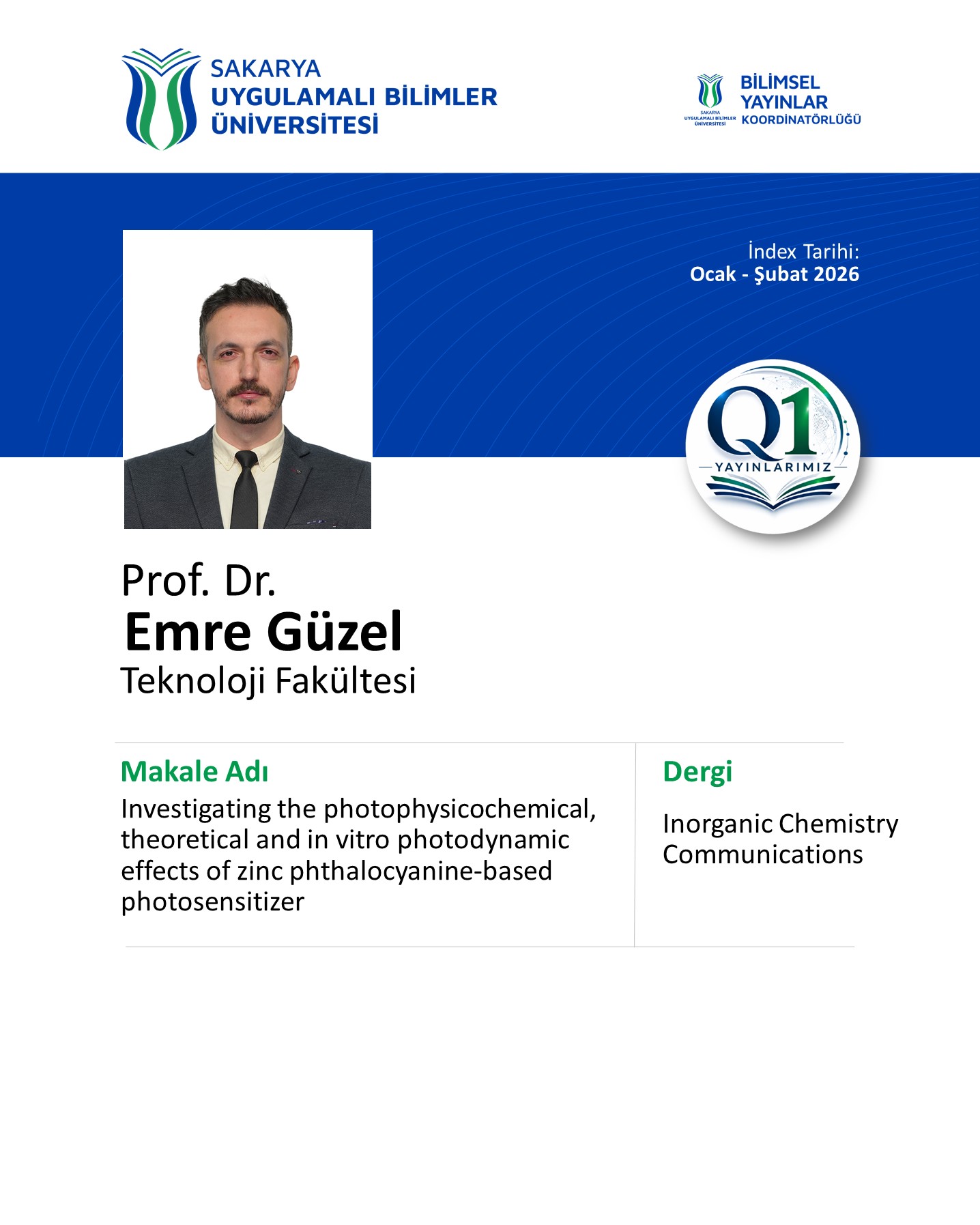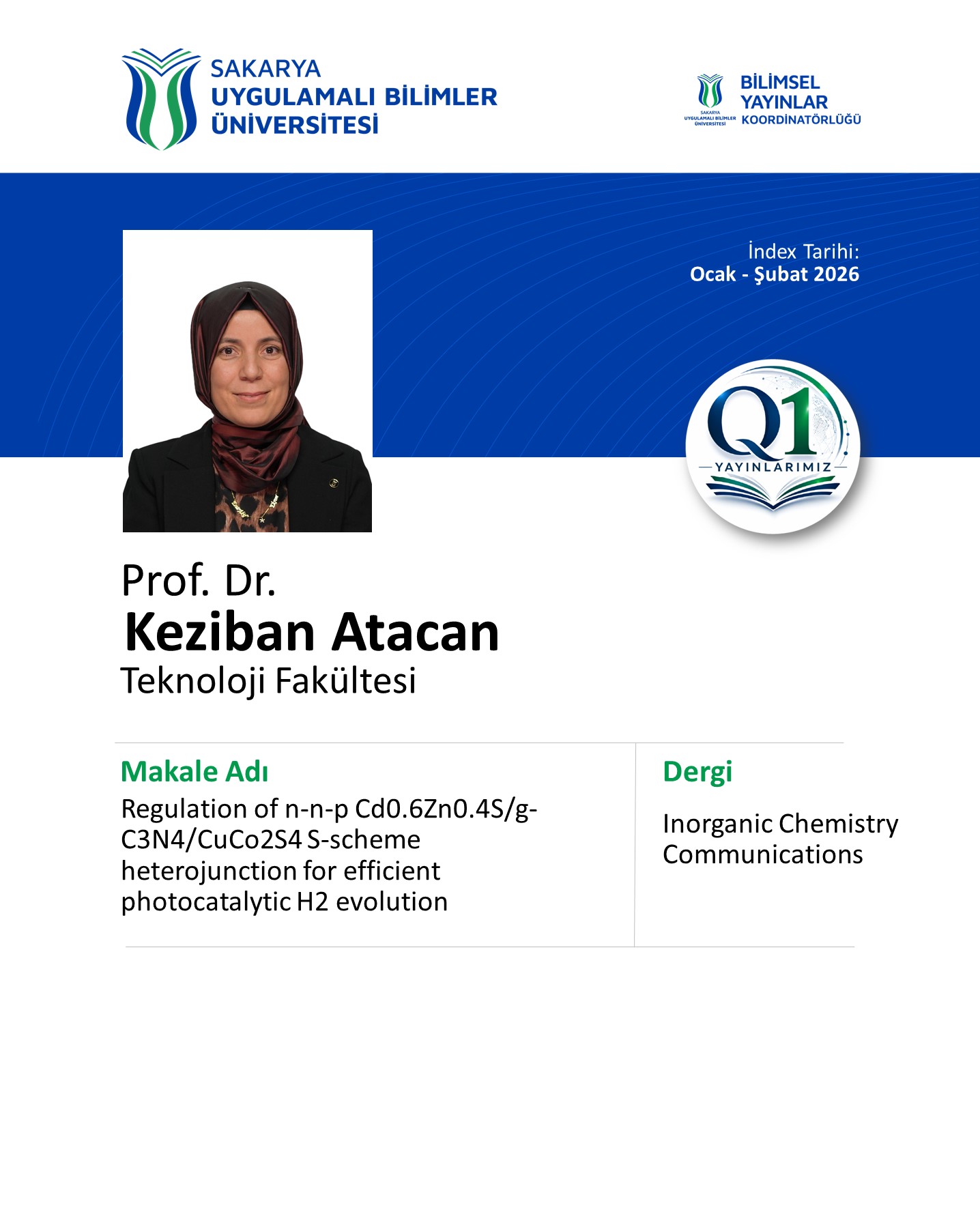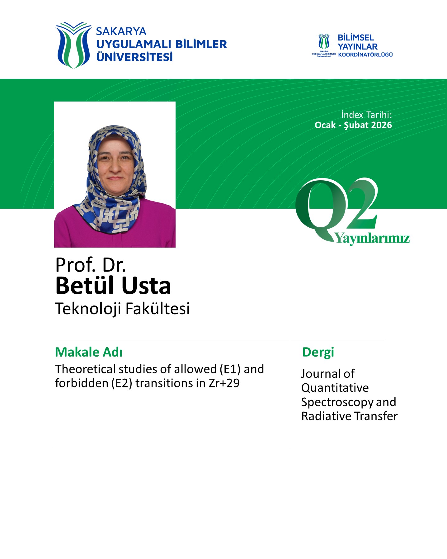 Bölümümüz öğretim üyelerinden Prof. Dr. Emre Güzel, Prof. Dr. Keziban Atacan, Prof. Dr. Betül Usta, Doç. Dr. Merve Güney ve Dr. Öğr. Üyesi Ekber Girgin hocalarımızın, 2026 yılı Ocak–Şubat döneminde Kimya, Fizik ve Matematik bilim alanlarında SCI-Expanded indekslerinde yer alan, çeyreklik dilimi Q1 ve Q2 olan saygın dergilerdeki makalelerinin yayınlanmış olmasından büyük bir memnuniyet duyuyoruz.